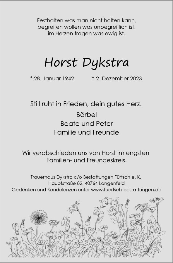 Unser aufrichtiges Beileid übermitteln Dörte und Fred aus Stapelburg.