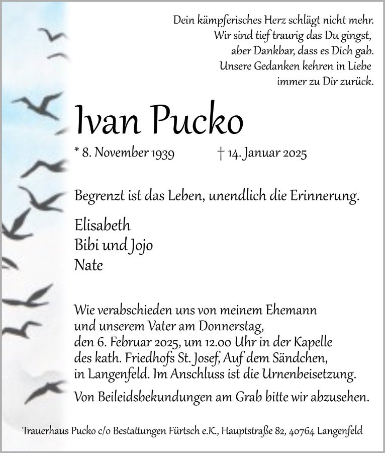 wir wünschen Ihnen von Herzen viel Kraft, dass Sie Menschen um sich haben, die Ihnen in dieser schweren Zeit beistehen und Halt geben. Zusätzlich können Sie auf dieser Gedenkseite Erinnerungen teilen und so das Andenken gemeinsam wachhalten.